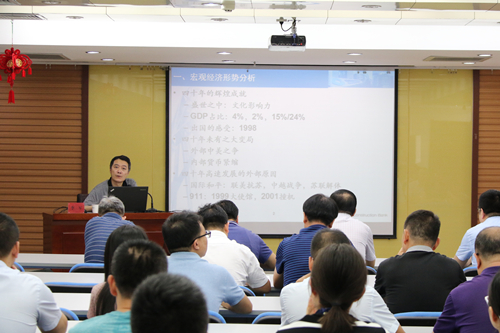 為進(jìn)一步促進(jìn)廣大干部職工對(duì)宏觀經(jīng)濟(jì)形勢(shì)的理解和掌握,8月15日下午,寧夏國(guó)投集團(tuán)2018年第五期“國(guó)投大講堂”開(kāi)講。集團(tuán)公司黨委委員、副總經(jīng)理李軍作了題為《經(jīng)濟(jì)的變局與風(fēng)險(xiǎn)的管理》專(zhuān)題講座。