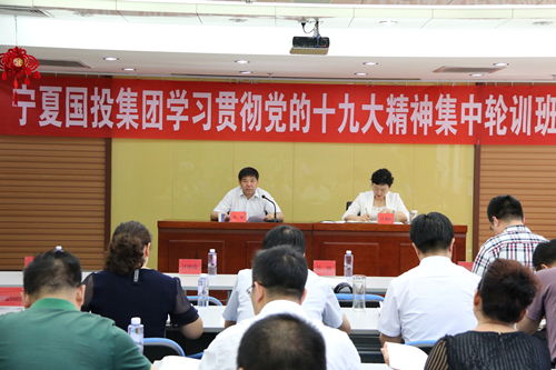 為了宣傳貫徹落實(shí)黨的十九大精神,根據(jù)自治區(qū)黨委組織部《關(guān)于扎實(shí)做好縣處級(jí)以上領(lǐng)導(dǎo)干部學(xué)習(xí)貫徹黨的十九大精神集中輪訓(xùn)工作的通知》要求,6月13日至22日,寧夏國(guó)投集團(tuán)舉辦學(xué)習(xí)貫徹黨的十九大精神集中輪訓(xùn)班,集團(tuán)公司中層以上管理人員和各權(quán)屬企業(yè)班子成員共計(jì)34人參加了培訓(xùn)。