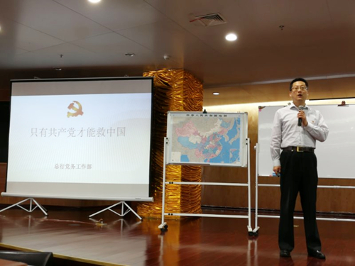 中國(guó)銀行總行黨務(wù)工作部副部長(zhǎng)王曄為參會(huì)人員講授了題為《只有共產(chǎn)黨才能救中國(guó)》的主題黨課。王曄副部長(zhǎng)從中國(guó)古代歷史出發(fā),運(yùn)用眾多歷史史實(shí)詳盡闡述了中國(guó)共產(chǎn)黨人的初心和中國(guó)共產(chǎn)黨的使命就是為中華民族謀復(fù)興、為中國(guó)人民謀幸福,進(jìn)而得出只有共產(chǎn)黨才能救中國(guó)的結(jié)論。整堂黨課主題鮮明、旁征博引,展現(xiàn)出一幅幅宏偉歷史畫卷,以真實(shí)生動(dòng)的事例再現(xiàn)了共產(chǎn)黨員對(duì)黨的信仰與忠誠(chéng),引發(fā)了參會(huì)人員的強(qiáng)烈共鳴。