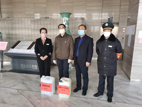 疫情當(dāng)前,使命在肩。為了切實(shí)做好疫情聯(lián)防聯(lián)控工作,2月19日上午,寧夏國(guó)投集團(tuán)將50斤“84消毒液”和50斤醫(yī)用酒精送到了集團(tuán)公司辦公所在地——銀川市金鳳區(qū)北京中路親水商務(wù)中心物業(yè)公司,有力地緩解了物業(yè)公司防疫物資短缺問題。