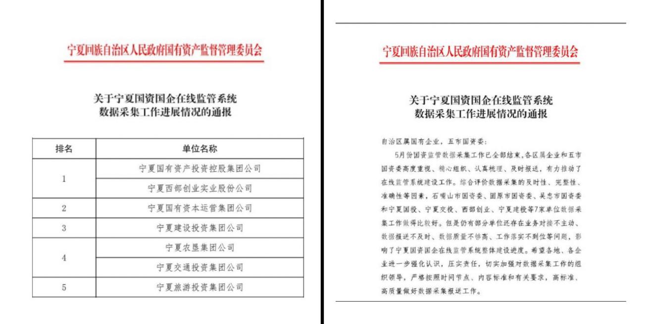 會(huì)議要求,集團(tuán)公司各部室、各子企業(yè)要高度重視,確定責(zé)任人,高效填報(bào)各項(xiàng)數(shù)據(jù),要切實(shí)擔(dān)負(fù)起責(zé)任,高效率、高標(biāo)準(zhǔn)完成各項(xiàng)工作,把系統(tǒng)真正用起來(lái)、維護(hù)好,為常態(tài)化填報(bào)信息奠定堅(jiān)實(shí)基礎(chǔ)。自國(guó)資在線監(jiān)管系統(tǒng)項(xiàng)目建設(shè)以來(lái),集團(tuán)公司高度重視,全面部署,認(rèn)真落實(shí)自治區(qū)國(guó)資委關(guān)于國(guó)資國(guó)企在線監(jiān)管的要求,在自治區(qū)國(guó)資委歷次數(shù)據(jù)采集及系統(tǒng)建設(shè)對(duì)接情況通報(bào)中,集團(tuán)公司均名列前茅,其中兩次排名第1,一次排名第2,數(shù)據(jù)采集和項(xiàng)目建設(shè)對(duì)接工作得到了一致認(rèn)可。