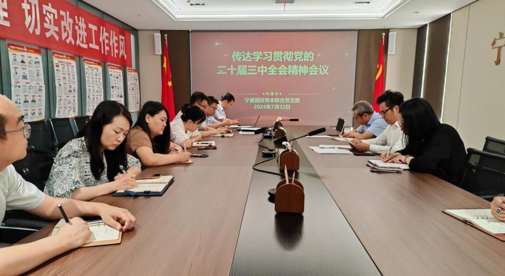7月22日,寧夏國投資本聯(lián)合黨支部召開會議,傳達學習黨的二十屆三中全會精神,抓好全會精神的學習宣傳貫徹工作,推動全面深化改革落實。公司總經(jīng)理領讀領學《中國共產(chǎn)黨第二十屆中央委員會第三次全體會議公報》,并提出落實意見。黨支部全體黨員及職工群眾參加集體學習。