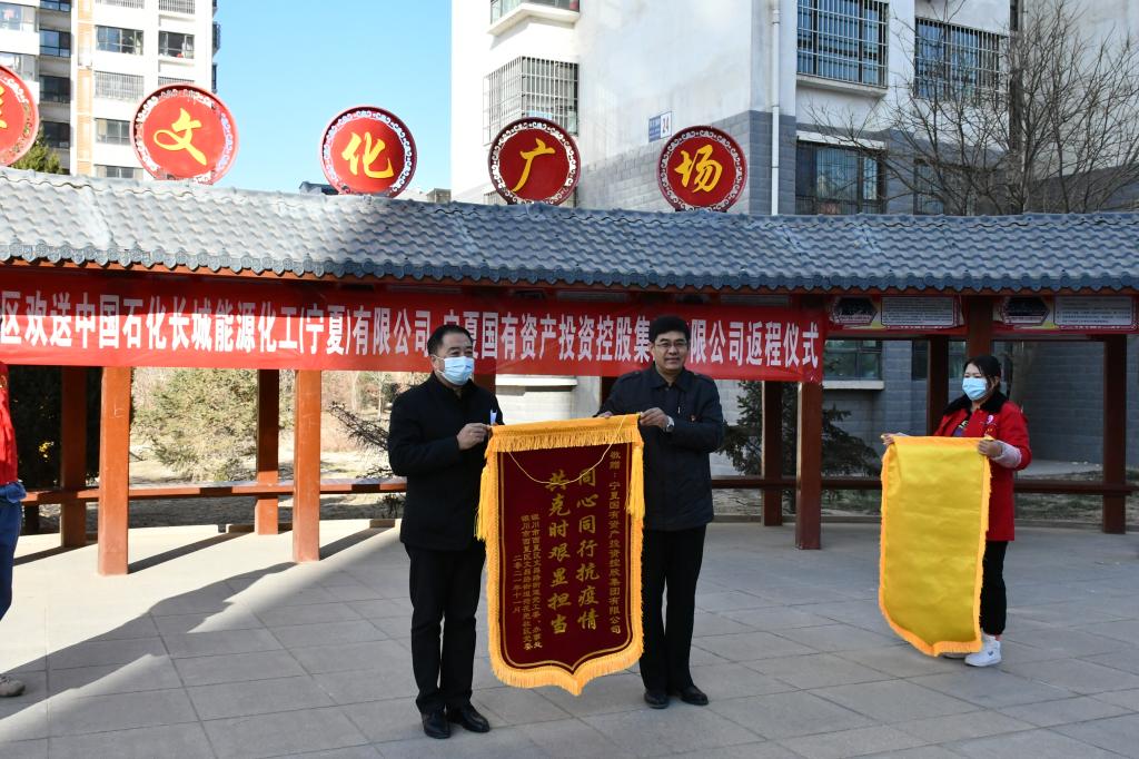 11月23日,銀川市西夏區(qū)文昌路街道黨工委組織儀式歡送各單位下沉到荷花苑社區(qū)疫情防控一線的志愿者,向集團公司為荷花苑社區(qū)疫情防控工作所作的貢獻表示感謝,集團公司黨委副書記、工會主席郭聿維,荷花苑社區(qū)縣級包抓領導西夏區(qū)人民法院黨組書記、院長陳巖濤等出席歡送儀式。