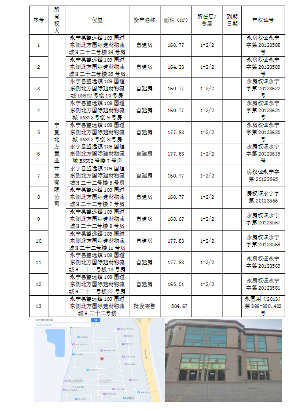 該戶債權(quán)項下抵押物位于北方國際建材物流城,周邊商業(yè)環(huán)境較好,資產(chǎn)流動性尚可,可用作建材銷售門面、倉儲等。