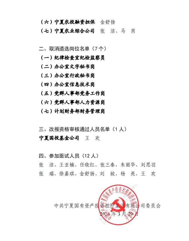寧夏國投集團(tuán)本部崗位遴選擬錄用人員名單公示公告