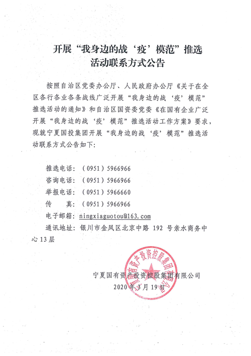 開(kāi)展“我身邊的戰(zhàn)‘疫’模范”推選活動(dòng)聯(lián)系方式公告