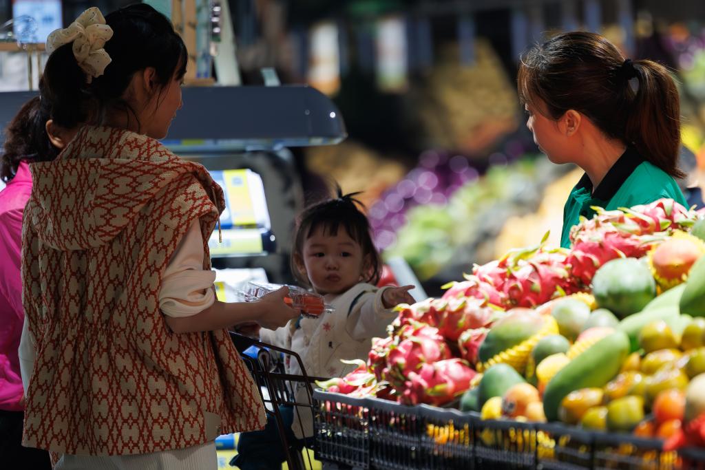 ??10月1日,市民在貴陽市觀山湖區(qū)合力惠民生鮮超市購物。新華社記者 劉續(xù) 攝