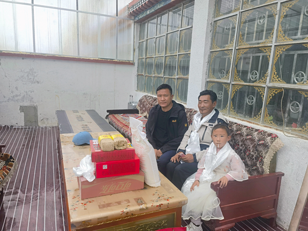 圖為尼瑪次仁(左)在阿里地區(qū)康樂(lè)新區(qū)開(kāi)展結(jié)對(duì)幫扶活動(dòng)。其美多杰 攝