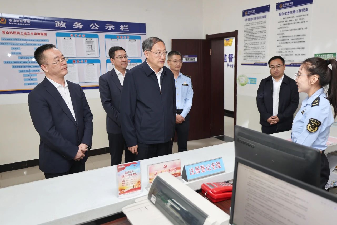 李邑飛在青銅峽市裕民市場監(jiān)管所,調(diào)研個(gè)體工商戶登記、消費(fèi)者權(quán)益保護(hù)等工作情況。