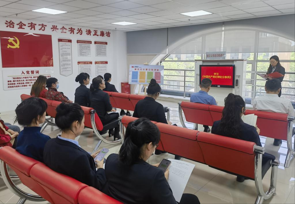本次讀書(shū)班按照“學(xué)紀(jì)、知紀(jì)、明紀(jì)、守紀(jì)”的總目標(biāo),堅(jiān)持原原本本學(xué),逐章逐條學(xué)習(xí)了《中國(guó)共產(chǎn)黨紀(jì)律處分條例》,黨支部書(shū)記就《條例》修訂重點(diǎn)內(nèi)容進(jìn)行解讀,參會(huì)人員緊扣黨的政治紀(jì)律、組織紀(jì)律、廉潔紀(jì)律、群眾紀(jì)律、工作紀(jì)律、生活紀(jì)律開(kāi)展了交流研討。同時(shí),結(jié)合本月主題黨日活動(dòng),聯(lián)合寧夏銀行北塔支行開(kāi)展支部聯(lián)建21,共同學(xué)習(xí)《條例》并分享學(xué)習(xí)心得。